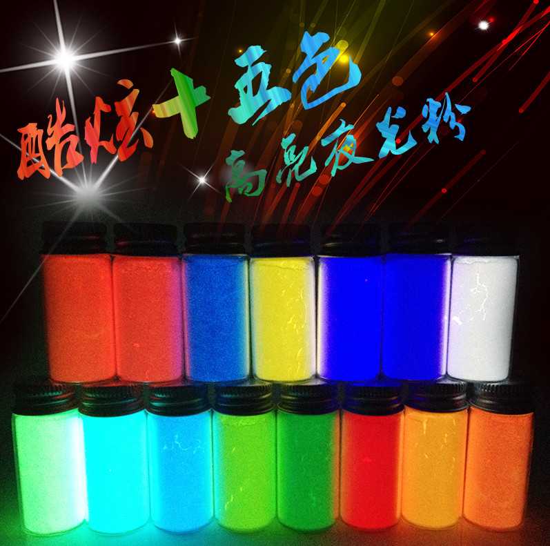 點擊:夜光粉是一種用途非常廣泛的顏料,服裝印花、玩具注塑、涂料顏料、夜光油墨、夜光指甲油等等都可以添加夜光粉。夜光粉先吸收各種光和熱,轉(zhuǎn)換成光能儲存,然后在黑暗中自動發(fā)光,并可無限次數(shù)循環(huán)使用。那么你知道夜光粉的顏色有多少種嗎?