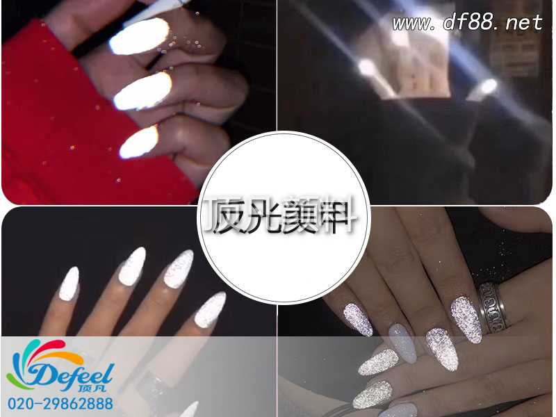 反光粉除了應(yīng)用在美甲上外,還可以應(yīng)用到其他多種行業(yè),如反光布,反光貼膜,反光涂料、反光標(biāo)牌、廣告宣傳材料、服飾材料、標(biāo)準(zhǔn)賽場跑道、鞋帽、書包、水陸空救生用品等,是非常熱門的印花材料。