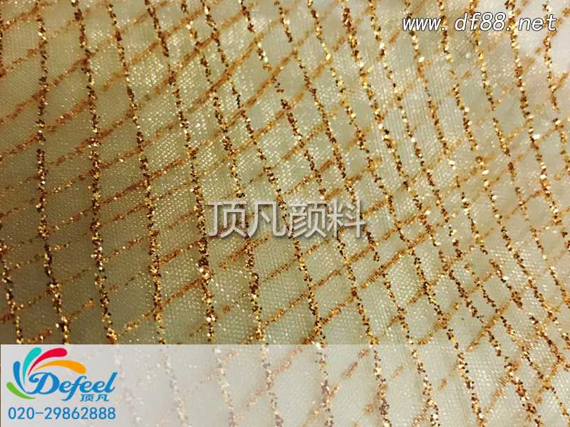 黏合劑性能的好壞,直接影響金粉印花的牢度、光澤、手感等問題。如黏合劑的高溫泛黃程度、遮蓋能力、色漿穩(wěn)定性和結(jié)膜速度等。因金粉中含銅50%~80%和鋅20%~40%的合金,經(jīng)高溫后金粉易氧化,光澤變暗,因此選用低溫黏合劑有利于保持金粉光澤。
