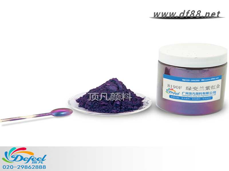 8190F 綠變紫紅金變色龍粉可應用于涂料、油墨、塑料各產(chǎn)業(yè),產(chǎn)品之設計大多以室內(nèi)(無紫外光之環(huán)境)與室外(有紫外光之環(huán)境)有顏色變化為訴求。