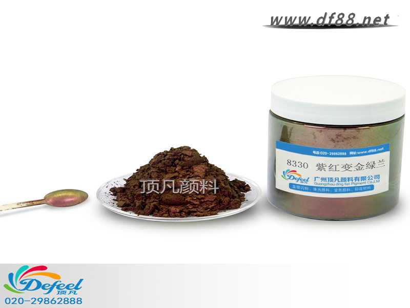 8330 紫紅變金綠藍變色龍粉可應用于涂料、油墨、塑料各產(chǎn)業(yè),產(chǎn)品之設(shè)計大多以室內(nèi)(無紫外光之環(huán)境)與室外(有紫外光之環(huán)境)有顏色變化為訴求。