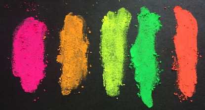 頂凡油性熒光粉變色顏料主要顏色: 熒光桃紅、熒光大紅、熒光桔紅、熒光金黃、熒光檸檬黃、熒光綠色、熒光玫紅、熒光寶蘭、熒光紫、熒光白色、熒光中國紅