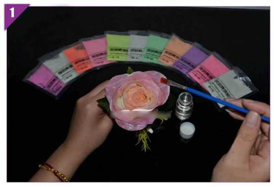 這種夜光玫瑰花圖片是p圖p不出來的,所以小編嘗試自己用夜光粉做一朵,用夜光粉做出來的跟圖片的一模一樣。下面就由小編教你如何使用夜光粉制作夜光玫瑰花吧。