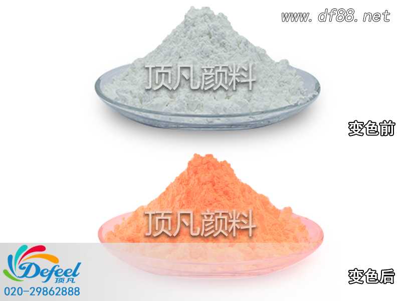 頂凡感光變色顏料在短時間內(nèi)可耐230℃高溫(10分鐘左右),可應(yīng)用于注塑和高溫固化。但變色顏料在發(fā)色狀態(tài)和消色狀態(tài)時的熱穩(wěn)定性不同,前者的穩(wěn)定性高于后者。另外當(dāng)溫度高于80℃時,構(gòu)成變色體系的有機(jī)物也會開始降解。因此變色顏料應(yīng)避免長期在高于75℃溫度下工作。
