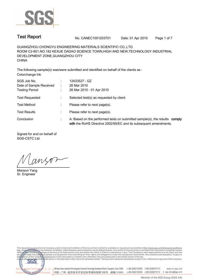 點(diǎn)擊:之前一直說頂凡顏料的溫變粉經(jīng)過國家權(quán)威檢測(cè)機(jī)構(gòu)檢測(cè),對(duì)皮膚無刺激性,搬運(yùn)及操作安全無虞,且不含對(duì)人體有害之物質(zhì),符合安全玩具和食品包裝規(guī)格基準(zhǔn)。今天小編為大家提供一份頂凡溫變粉檢測(cè)報(bào)告。