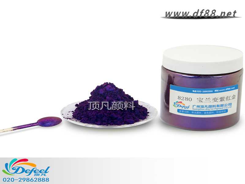 頂凡變色龍顏料顏色可分為:紅/紫/藍(lán), 紫/藍(lán)/綠, 藍(lán)/綠/金, 綠/金/白/紅, 金/紅/紫, 棕/紅/紫, 綠/金, 金/紅, 紅/白/綠, 綠/金/紅等顏色。